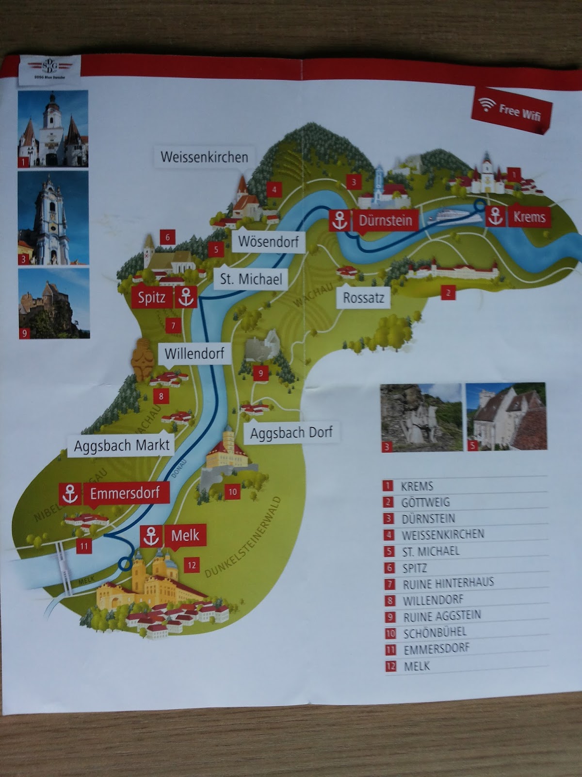 Plaukėme tokiu maršrutu: Melk - Krems (paveiksliukuose galite matyti visas buvusias pilis) |